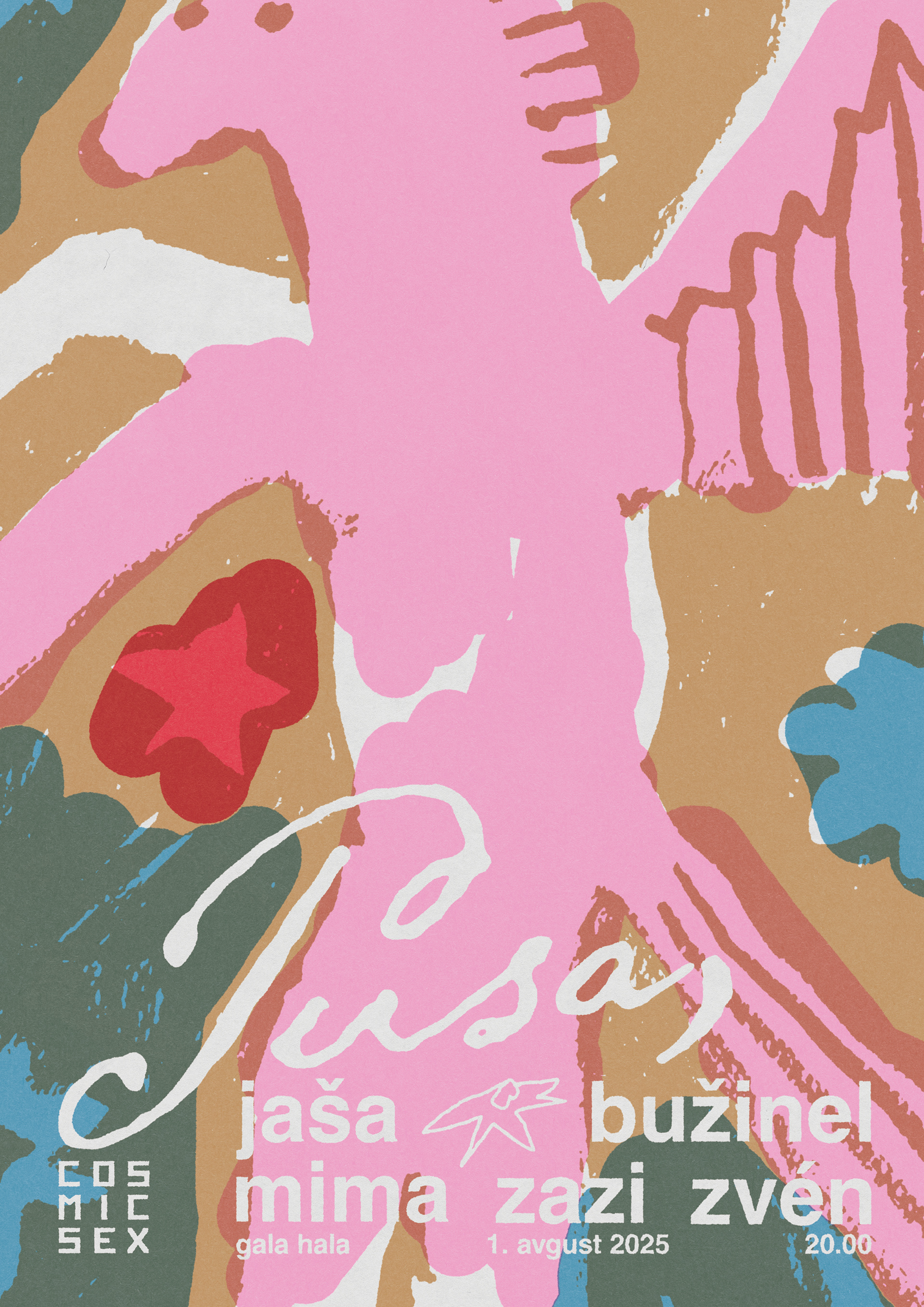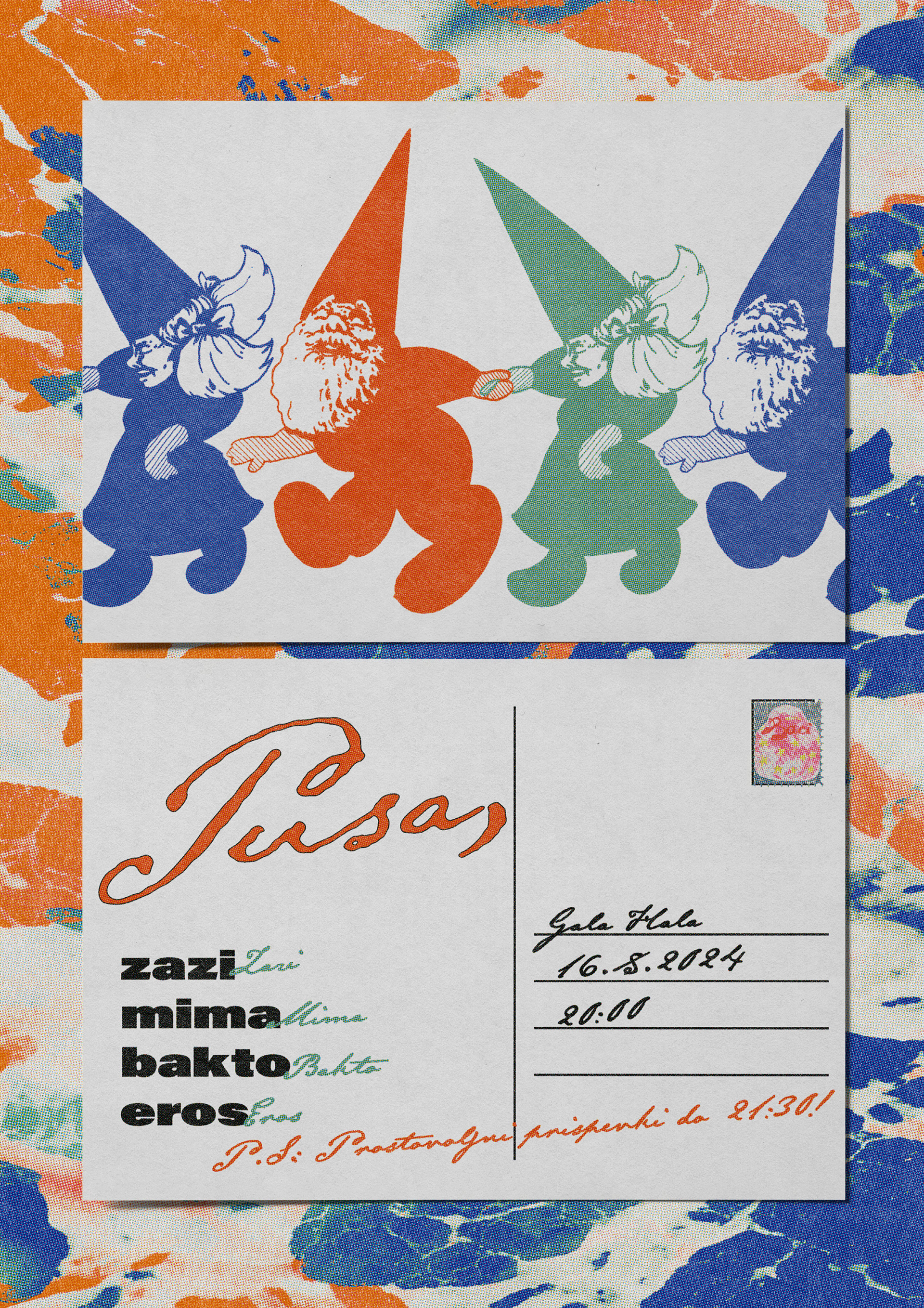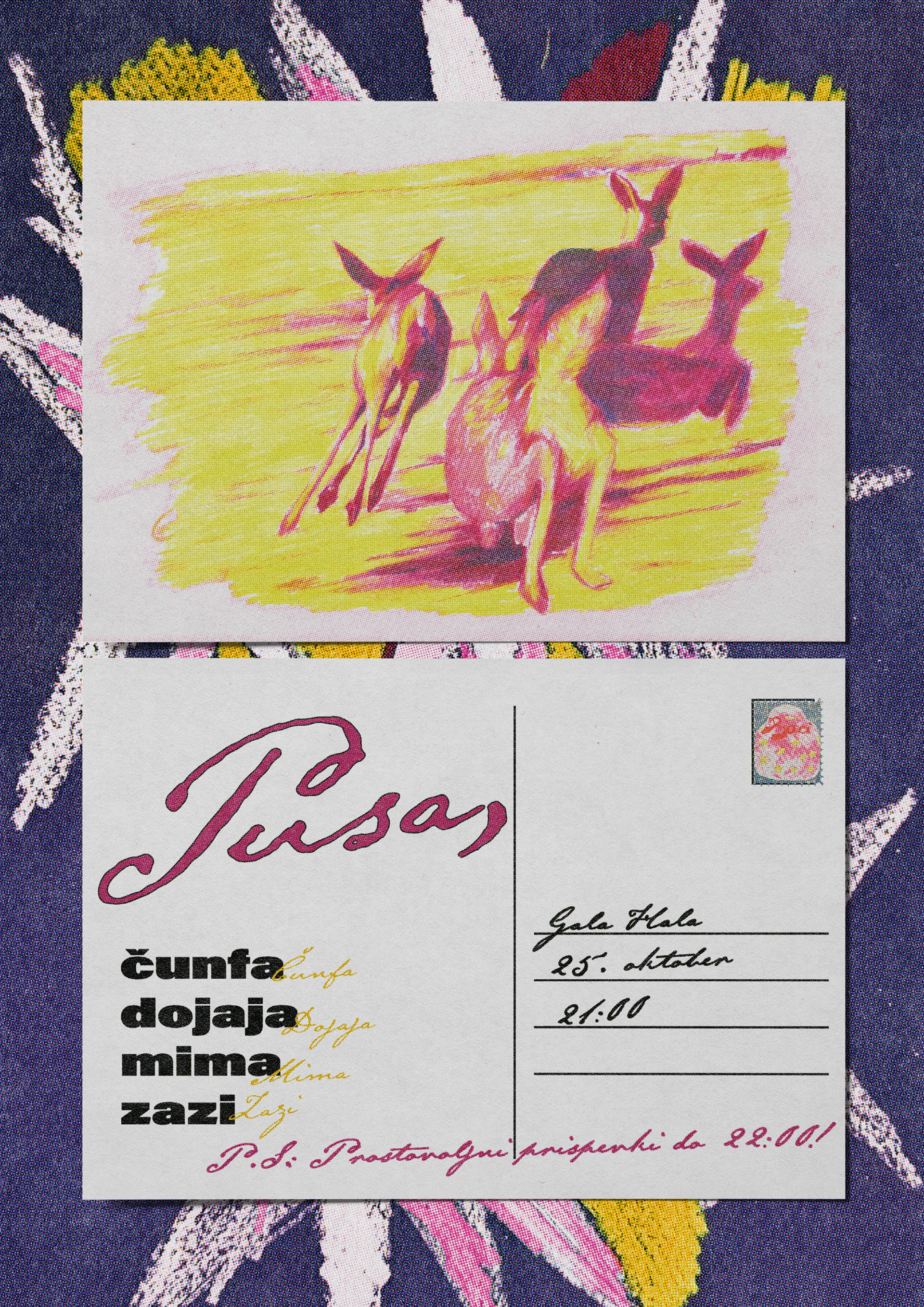 Posters and promotional material for Pusa, a series of parties organised by two female Ljubljana based DJs and creators. Illustrations by Valentin Radulovic.